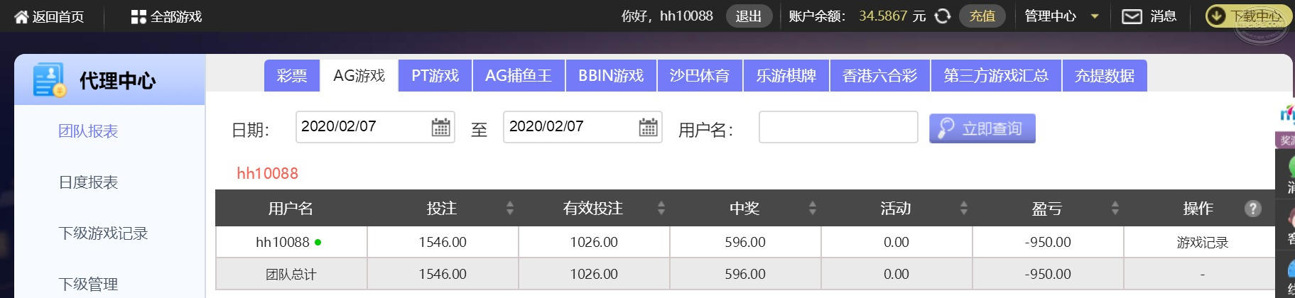 3. 亏损金额:950
